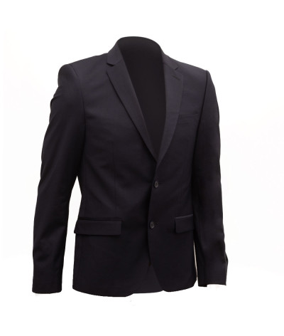 Veste de costume professionnelle bleu marine, conçue pour les serveurs, maîtres d'hôtel et le personnel de réception. Allie une finition soignée à un tissu respirant et extensible pour un confort optimal lors des services.