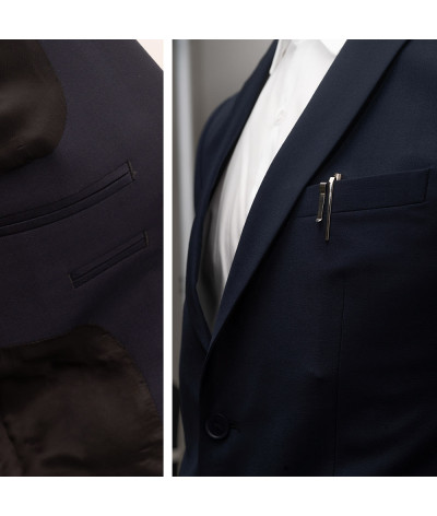 Élégante veste de costume homme bleu marine, idéale pour les métiers de l’hôtellerie et de la restauration.