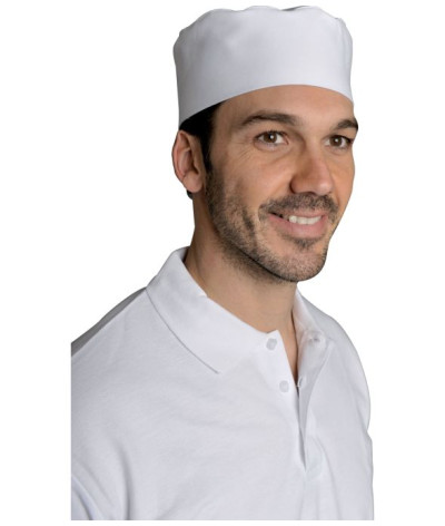Ce calot de cuisine blanc en tissu lavable vous accompagnera au quotidien en cuisine.