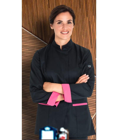 Veste de cuisine femme RIA Manches Longues Noir et Rose