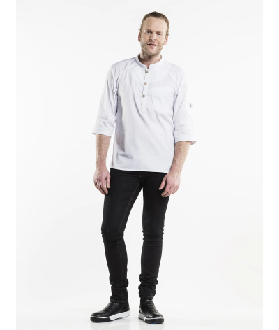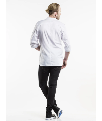 La veste de cuisine Bujutsu blanche incarne le parfait équilibre entre tradition et modernité. Elle offre un confort durable, un style professionnel raffiné et une originalité discrète grâce à son design en biais et sa fermeture pullover. Un choix idéal pour les chefs souhaitant associer élégance, praticité et distinction.